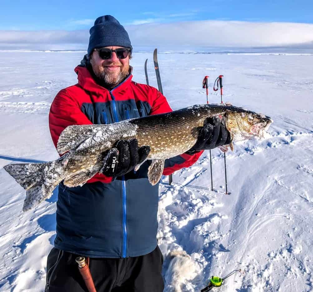 Transfers, winter clothing, snowmobile instructions, guided safari (2 persons/snowmobile, children in sled, about 20 km), hot drink, sausage grilling, ice fishing equipment and professional guide