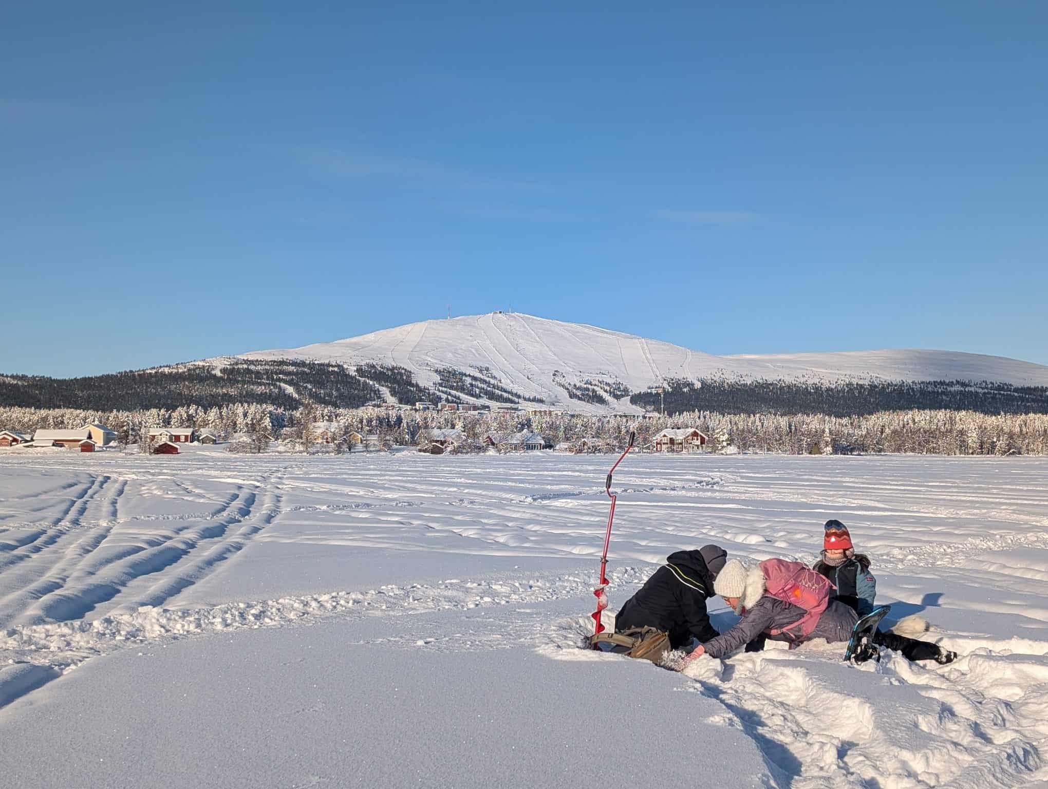 The journey leads to a peaceful frozen lake where the magic of ice fishing awaits. With friendly guidance from your expert local guide, even the youngest adventurers can drill into the ice and try their luck — a proud Finnish tradition that never fails to delight. Plenty of safe space to explore, and a campfire stop with hot drinks and sausage grilling to warm everyone up and let the stories flow. No experience needed. Children from age 4 welcome. All equipment provided.